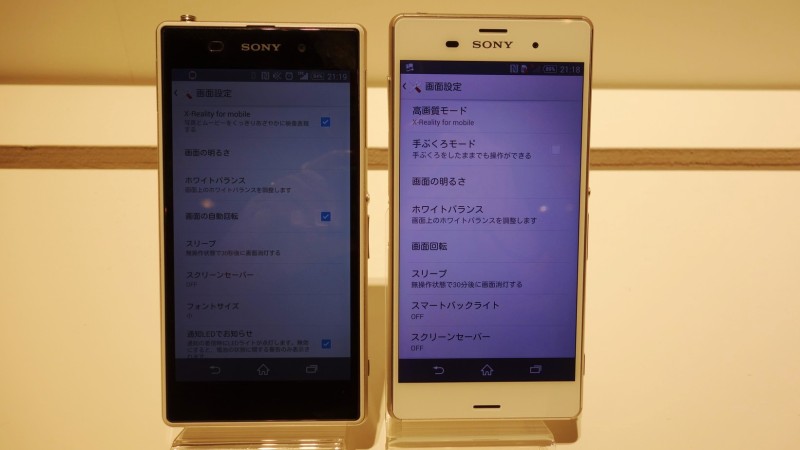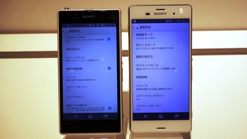 撮影自体に問題もあるので分かりづらいですが、かなりZ3は明るくなっています。一方、明るさを最低に落とすと逆にZ3の方が暗くなりました。かなりレンジの広い設定が出来ます。